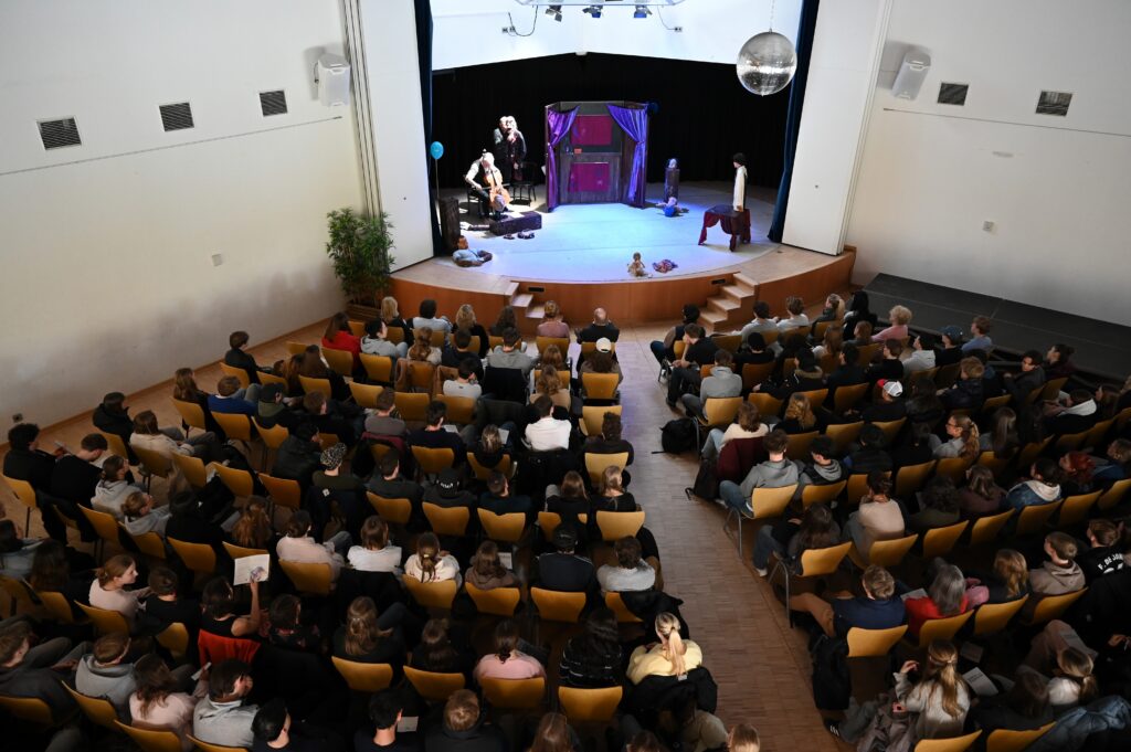 Das mobile Figurentheater „Bühne Cipolla“ begeisterte mit einer kreativen Inszenierung an der Stadtteilschule Bergstedt. Im Zentrum der Aufführung stand unter anderem der Aufstieg des Faschismus in Italien. Dabei bot das Stück den Schülerinnen und Schülern einen wertvollen Anlass, sich kritisch mit Themen wie Autorität, Politik und gesellschaftlichen Entwicklungen auseinanderzusetzen.